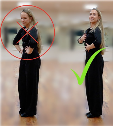Slouching is one of the most common habits new dancers bring with them. It makes you look smaller, takes away your energy, and limits how your body can move. In contrast, lifting through your spine makes you look taller, lighter, and more confident. It also allows your partner to connect with you more easily because your frame feels open and supportive.